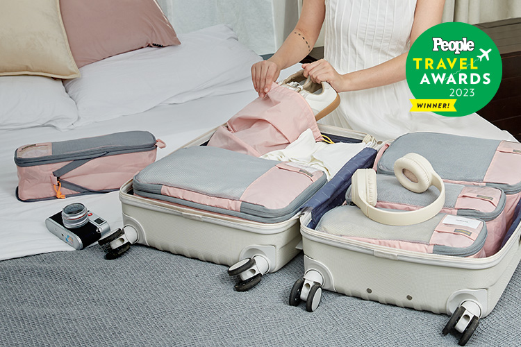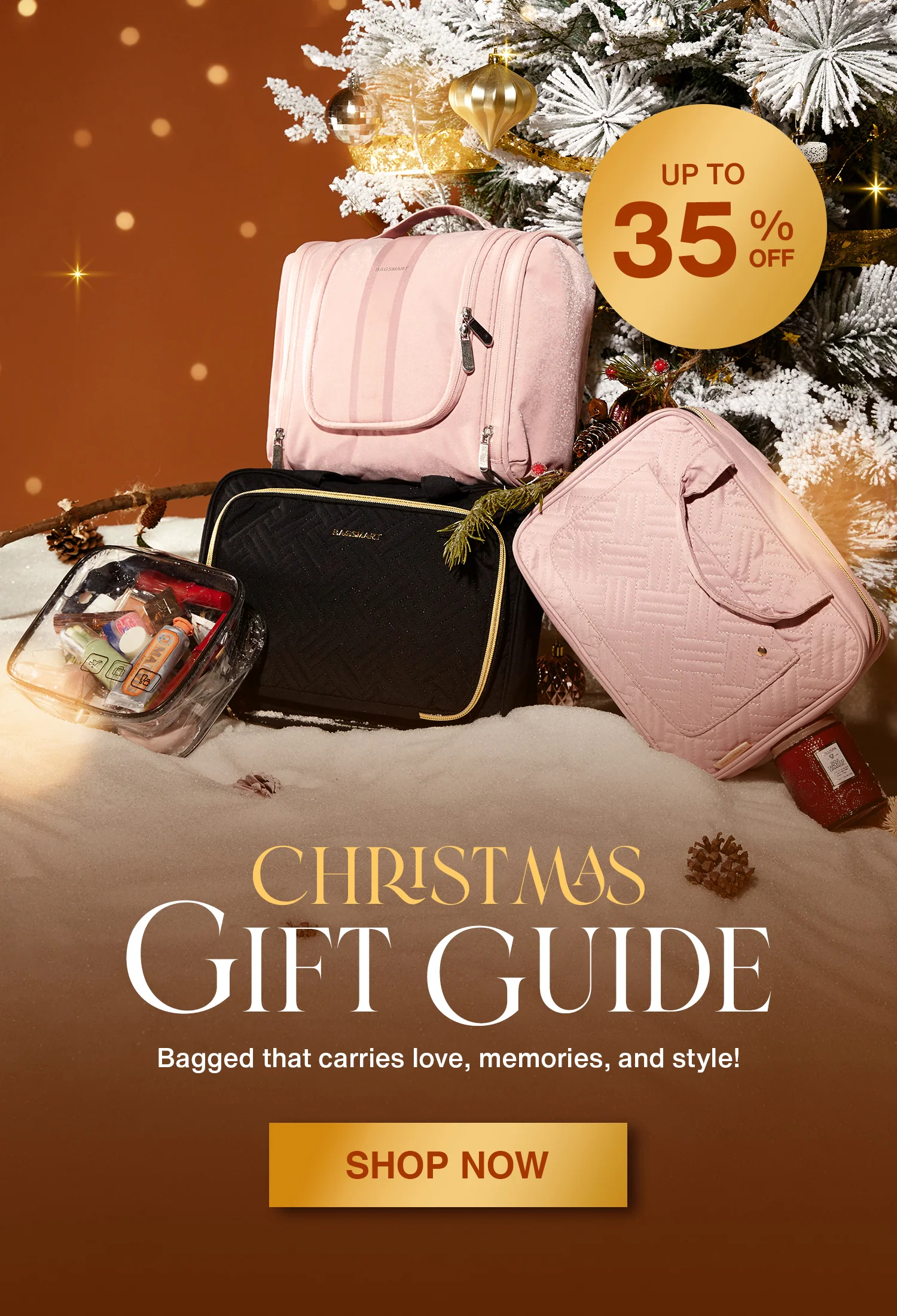 The BAGSMART water-resistant hanging toiletry bag, a No. 1 bestseller with four zippered compartments that hold bottles upright. It has 4.8 out of 5 stars and over 43,000 ratings online."